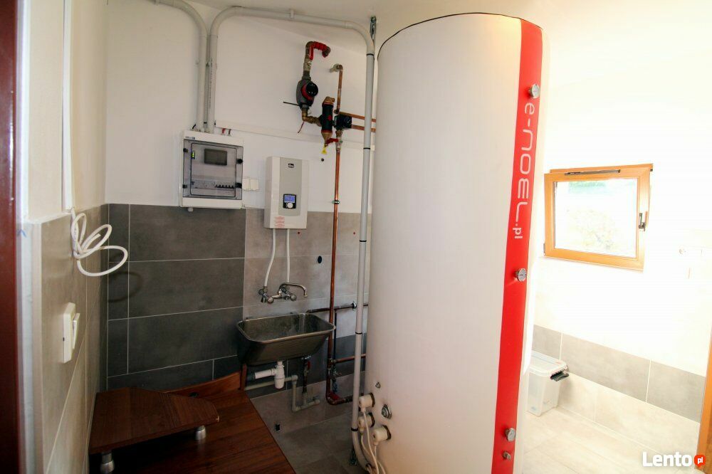 Warto podkreślić, że nieruchomość jest wyposażona w system rekuperacji, który zapewnia efektywną wymianę powietrza oraz zwiększa komfort życia. Dom posiada również cztery klimatyzatory, co gwarantuje przyjemne warunki niezależnie od pory roku. Ogrzewanie z bufora ciepła, ładowanego elektrycznie w niższej taryfie, dopełnia ofertę komfortowego mieszkania.
